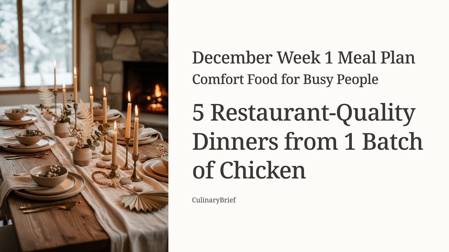 P.P.S. If you’re new here: Welcome. Every Thursday I send one meal plan—chef-designed recipes you can actually make at home. No fluff, no diet culture, just practical cooking systems for real life. Glad you’re here.