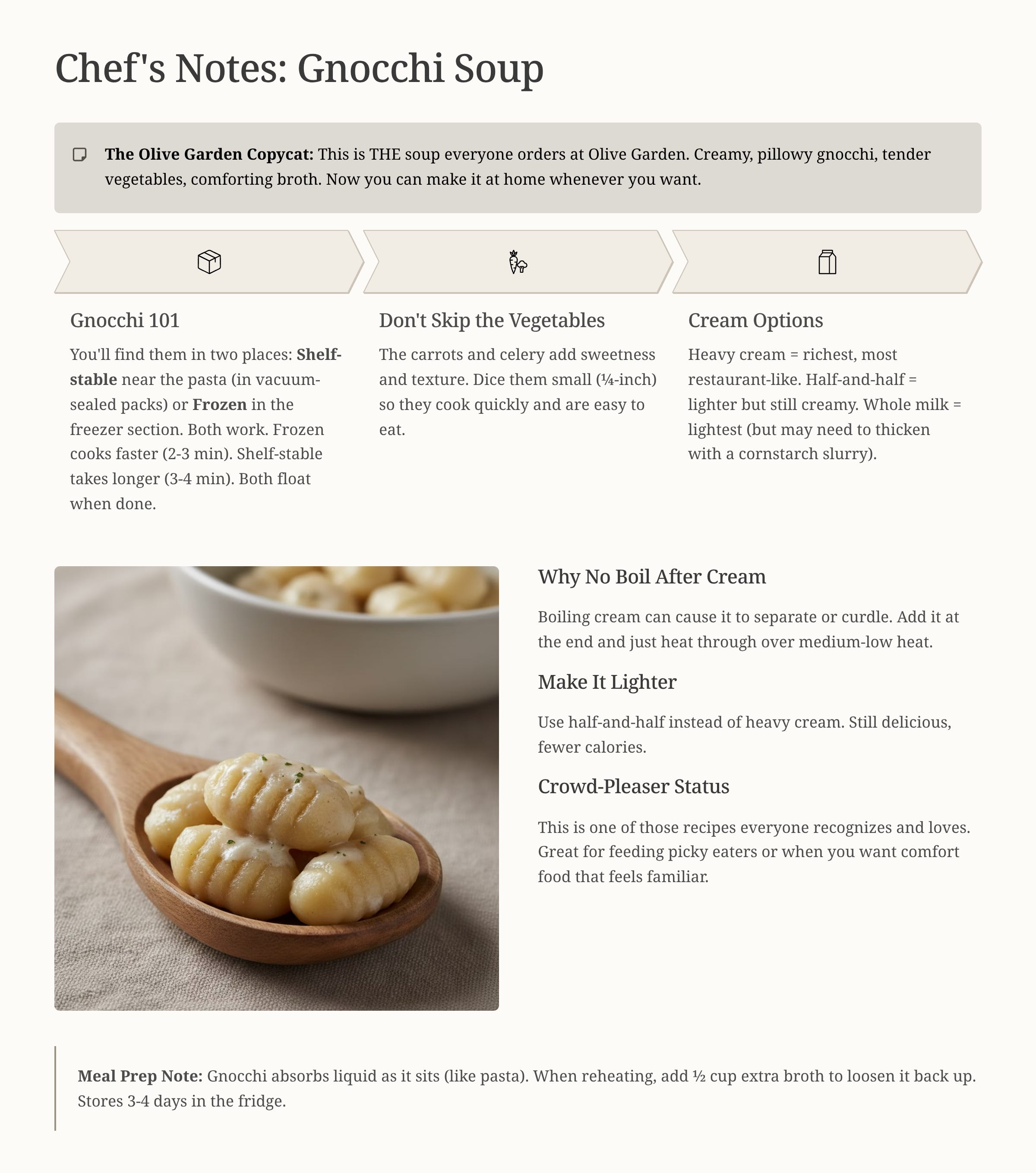 You’ve had Olive Garden’s gnocchi soup. You know it’s good. Making it at home isn’t a gamble.