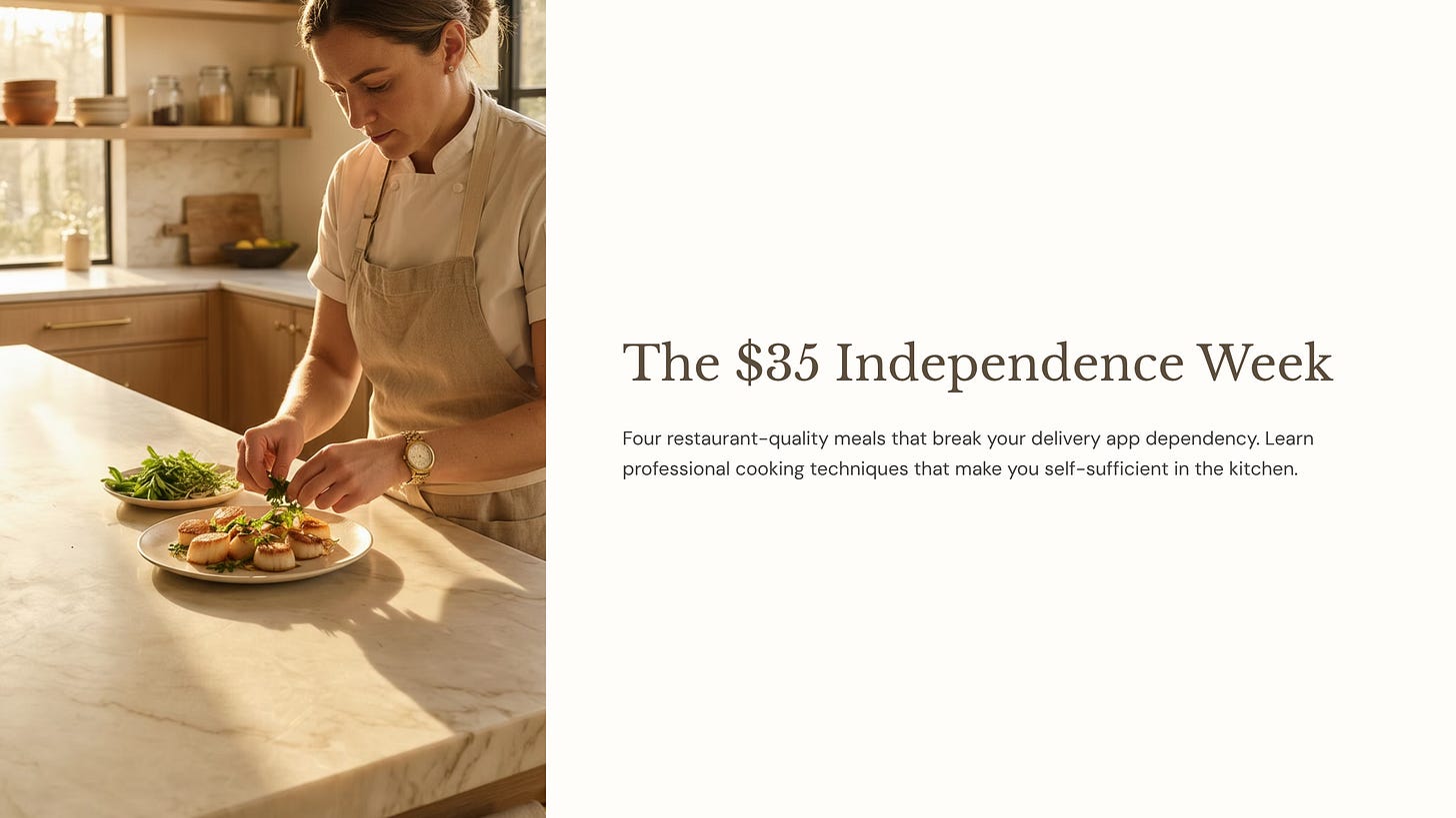The ability to feed yourself. To stop depending on apps that cost $15/meal. To own the skill forever.