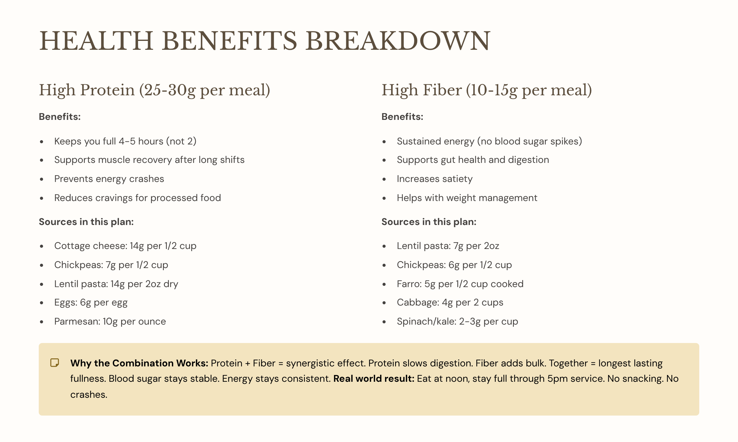 Protein slows digestion. Fiber adds bulk. Together, they create this synergistic effect that actually keeps you satisfied.