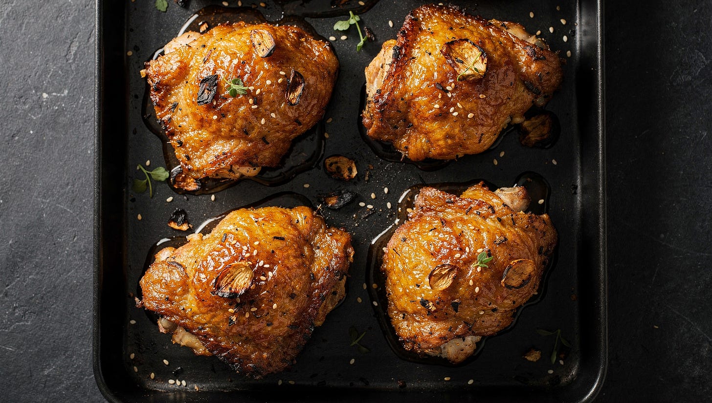 Chicken thighs give you protein and fat — the combination that actually signals satiety to your body. The vegetables roasted in olive oil add fiber and volume. The honey-garlic glaze? That’s not a compromise, that’s the part that makes you want to eat this way. Because if it doesn’t taste good, you won’t keep doing it.